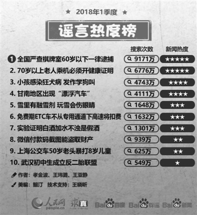 2018年的第一季度过去了,你被谣言“套路”了吗?“求真”栏目与百度辟谣平台联合推出第一季度百度搜索排行前十名的谣言盘点,探寻谣言背后的套路,揭开谣言真面目。