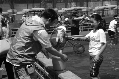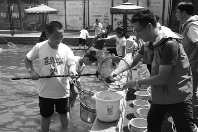 科普时报讯 (马学健) 为让孩子们了解观赏鱼文化,开阔视野,提高动手能力,6月7日,北京市水产技术推广站与北京市朝阳区黑庄户教辅中心组织第三届学生捕鱼节活动。这些来自周边学校的学生在黑庄户教辅中心操场内2个近800平米的捕鱼池内,体验了6种捕鱼的方式,