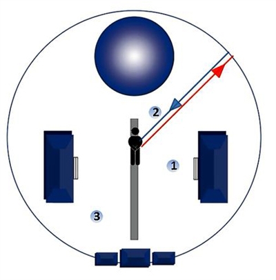 三音石是指皇穹宇正殿前御路北起第三块石板,也是皇穹宇院落的几何中心。站在三音石上击掌可以听到三声回声,第一个回声是由东西配殿的墙面反射回来的,第二个回声是墙面第一次反射会聚到三音石的,第三个回声是墙面第二次反射会聚的结果。