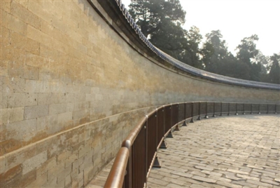 “敲之有声,断指无孔”的澄浆砖,加上古代工匠们精湛的技艺,使墙面平整、光滑并且形成了适当的弧度,天坛回音壁奇妙的声学现象才得以呈现在世人面前。(北京市天坛公园管理处供稿)