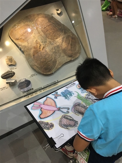 7月19-21日,环球自然日全球总决赛在武汉博物馆长江文明馆举办,来自全国十多个省市和美国、东南亚地区的上千名选手、指导老师、评委、组委会和学生家长参加了活动。活动分为中文展览组、英文展览组、表演组和绘画组。这是一位参加绘画组比赛的小学生面对一块古生物化石作画,复原展现了数亿年前的海洋生物世界。郑永春 摄