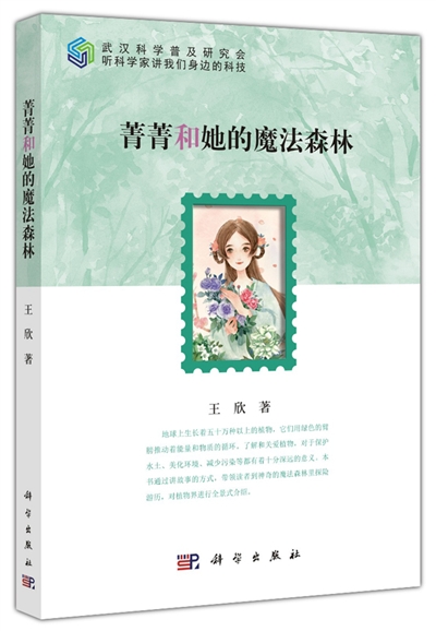 植物们不会活动、不会发声,怎样把它们写得生动有趣呢?我想起了小时候看的动画片《花仙子》,决定塑造一个中国版的花仙子——菁菁。菁菁来到神奇的魔法森林,在森林仙子们的帮助下,收齐了12颗金种子,解救了家乡的灾难。为了让读者看到这个勇敢善良的15岁女孩,我和插画师反复沟通,推敲她的容貌和衣着,让菁菁可爱的模样跃然纸上。