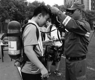 来自北京第二外国语学院、中国传媒大学、北京林业大学等10余所院校的大学生志愿者先后学习了臂部包扎、心肺复苏、担架救护、防震减灾等应急自救互救技能、参观了应急车辆设备和急救救护车辆。他们还走上民防指挥通信车、人防移动宣传教育车了解设备性能,体验了手摇警报器的使用等。王占明 刘靓 摄影报道