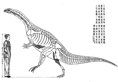 | 图为许氏禄丰龙再造像(1940年杨钟健手绘并题诗)。 |