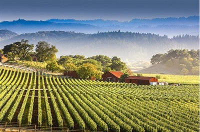 2017年11月下旬,我们驱车来到距离旧金山不到100公里的纳帕谷,最繁忙的收获季节刚刚过去,湛蓝的晴空下,沃壤千里,葡萄园藤架上的叶子呈现金黄色,仔细寻找,还能看到零星挂藤的紫色小葡萄串。