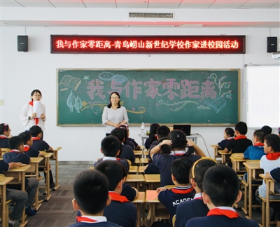 9月29日下午,山东省青岛市崂山新世纪学校举办了“我与作家零距离”—— 作家进校园活动。学校邀请到了著名儿童文学作家、中国科普作家协会海洋科普专业委员会副主任委员、中国海洋大学驻校作家霞子,为五·1和五·2中队的队员们带来了一场作家见面交流会。