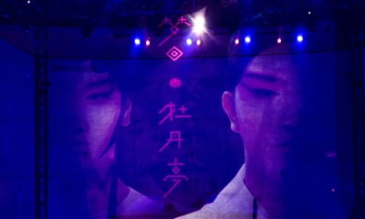 这是“十一”长假在北京园博园开幕的2018中国戏曲文化周的重头戏——戏曲科幻秀《梦回·牡丹亭》,为现场观众带来的全新科技感的传统戏曲体验。