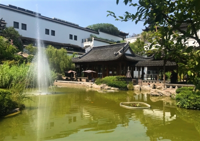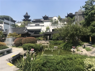 在江宁织造遗址上复建的江宁织造博物馆,伫立在离南京市“总统府”不远的中山路与太平路交叉的十字路口的西北角,很是醒目,由著名建筑学家、两院院士吴良镛先生担纲设计。设计方案五易其稿,最终确定以“核桃模式”和“盆景模式”为设计理念,突显了李白《登金陵凤凰台》中“三山半落青天外,二水中分白鹭洲”的意境,从南向北层层叠起,如同一幅江南山水画,将现代建筑语言和中国传统园林建筑完美地结合在一起。