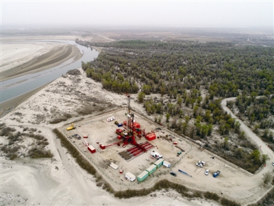 图为位于塔里木河河岸一侧在封井作业的TP10CH井