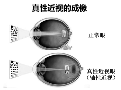 单纯性近视分为两大类型,一种是调节性近视(假性近视):这类近视是可逆的,远视力下降只是一种现象,主要问题出在眼肌上,眼球的生物结构并没有发生改变(眼轴尚未异常增长)。另一种是轴性近视(真性近视):此类近视不可逆,眼睛已经发生了生物结构的改变(眼轴已异常增长)。大数据研究结果表明,学生近视一旦产生,难以逆转,如不及时采取干预措施,听之任之,近视度数就会随着年龄的增加而增长,而且在7~14岁时增长更快。