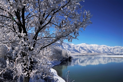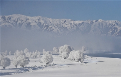 12月23日,雅鲁藏布江流域出现独特的雾凇景观。