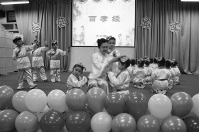 大班宝贝们的《村居》《千字文》《山行》或激昂或婉约,或可爱或清新。中小班孩子们的《明月几时有》《悯农》与音乐、表演完美融合。一篇篇传统佳作,经过教师们的精心编排,以不同的形式来表达自己的情感和感悟,展现出全园师生弘扬传统文化、热爱伟大祖国的真挚情怀。