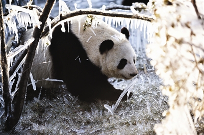 严冬时节,正当人们裹得严严实实的时候,济南野生动物世界的大熊猫却格外欢实。园区工作人员特意准备了树挂景观,提高观赏度的同时,也让大熊猫在冰天雪地里尽情“撒欢”。