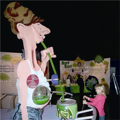 在展览中,参观者可以爬上有疣、头发和伤口的“人体皮肤”;也可以变身为一个尘埃粒子,穿过一个“巨大的鼻子”来了解粘液产生和空气过滤等过程;还可以深入“呕吐源头”,了解人类呕吐的原因;滑过或爬过9米多的消化系统(3D模型),近距离感受消化系统是如何工作的……当人们沉浸在展览中时,生活中许多难以启齿的事物都开启了科学的大门,虽然在参观过程中可能会忍不住感叹:啊!好恶心!但也会发现,原来科学就在身边,才得以把端庄留在家里,毫无顾忌地去探索和享受这个展览(图2)。