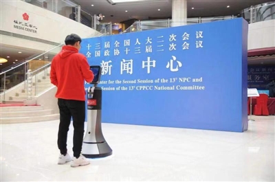 在全国“两会”新闻中心,机器人“小融”已上岗就位,它既没有扛摄像摄影机,也不拿纸笔记录,方方的脑袋里却装满了“两会”新闻和知识。据悉,这是猎豹移动特别定制的AI机器人。其实不止“两会”,博物馆、政务大厅、酒店、银行等场景,都已经出现了服务机器人的身影。(图片来自人民网)