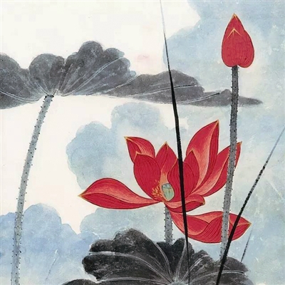 徐悲鸿在《张大千画集》序中说:“大千代表山水作家,其清丽雅逸之笔,实令人神往。”张大千以擅长画荷花著称,素有“古今画荷的登峰造极”之誉,在众多花卉题材中,张大千偏爱荷花。张大千早年画荷花,画法多以明代画家徐渭画法为多,中年时是半工半写者多,到了晚年最擅长以泼彩半抽象手法来画荷花。