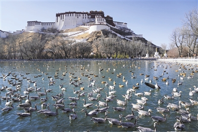 三月的雪域高原,古城拉萨春意渐浓。图为宗角禄康公园一景。新华社记者 普布扎西 摄
