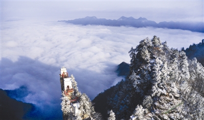 雪后初霁,秦岭深处的塔云山景区云海翻腾,宛如仙境。新华社记者 陶明 摄