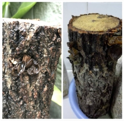 2015年的秋天,邓玉琳老师带着我们全班同学到广东江门野外探索。在路上,我们发现了一个神奇的现象,原本已经腐朽的树木上居然还存在生命的痕迹,那就是野蘑菇和野木耳。