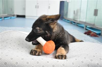| 图4:三个月大的“昆勋”在警犬基地接受训练。(北京希诺谷生物科技有限公司和公安部昆明警犬基地供图) |