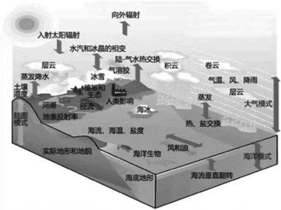 曾庆存举了个例子:如果要预报几天后的天气,我们只需考虑大气,但如果要预测几年甚至几十年后的气候,我们还需要考虑海洋、陆地植被、太阳活动等等。