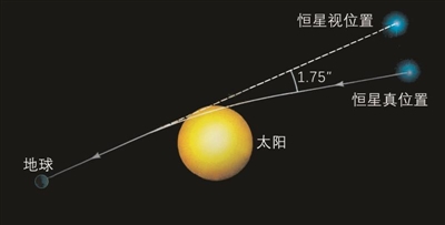 广义相对论的另一项天文学验证——光线在引力场中的偏转,是本文的主题。按照广义相对论,光线经过太阳引力场后其行进方向会偏转一个角度,其数值为1.75″/r,这里r为光线离太阳中心的最短距离(以太阳半径为单位)。例如在太阳表面处r=1,则偏转角度为1.75″。