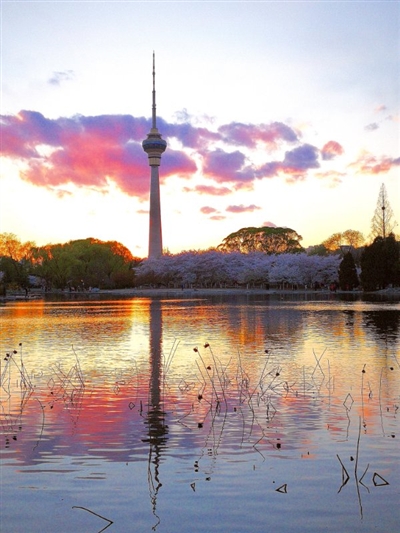 “玉渊春晓旭日彤,樱花飞谢彩雨朦。桃红柳绿媚潭水,高塔秀影也争宠。”4月4日,我到中国科技会堂列席中国科协党组会议,由于早到了一个多小时,便走进附近的玉渊潭公园散步;迷醉于清晨的湖光山色、樱花美景,遂信手写下了这首短诗。