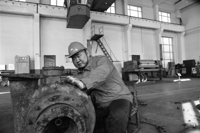 说着,刘松挪开小板凳,一手扶着腰,一手指挥着同事把刚修好的离心机转上吊转平台,运送出厂。