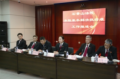 | 图为石景山法院举行基本解决执行难工作推进会 |