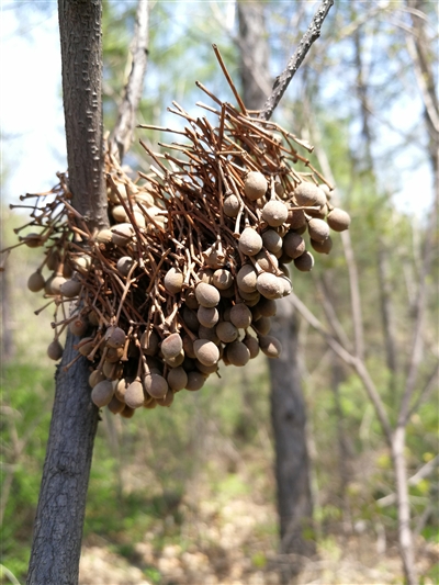 | 图3:一般人会以为这是人工摆放的,其实是大自然天成的。椴树的果序被风吹落,恰好被挡在胡枝子的枝头。 摄影/刘华杰(北京大学哲学系教授,博物学文化倡导者) |