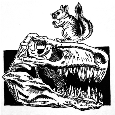 市场中的企业也一样,无论你曾经做到规模有多大,实力有多强,如不求改变,不开拓创新,最终也会被淘汰。图中我还画了一只活泼可爱的小松鼠,来代表市场中那些小企业。鼠类在地球上也生存了几千万年了,至今仍然存活。科学家推算目前全世界的老鼠有100亿之巨,可见其顽强的生命力。我在图中用霸王龙的髅骨代表因机构臃肿,缺乏活力而消亡的大企业。用活泼灵动的小松鼠来代表积极求变的小企业,一枯一荣,一死一生,两者形成强烈的反差,对这篇文章起到了很好的烘托效果。