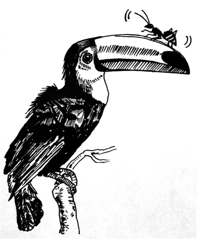 图2是我为《关于论证市场竞争中小企业与大企业之博弈》一文画的。我画了一只生活在南美洲热带丛林中的巨嘴鸟,这种鸟有着让人生畏的大嘴,巨大的鸟喙几乎能达到其自身长的一半,用它来代表市场中的实力强大的大企业及市场严酷的竞争环境再好不过了。在巨嘴鸟巨大的鸟喙上,我画了一只小蚂蚁,象征市场上灵活多变,勇于创新的小企业。蚂蚁在大自然中团结协作,有着极强的进取与团队精神,它们不畏强敌,目标坚定,勇往直前。我把小蚂蚁画在了巨大的鸟嘴上,用来表现在竞争残酷的市场中,顽强求存的小企业的形象。
