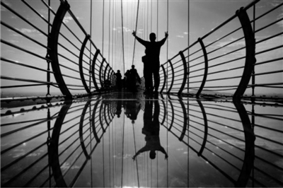5月4日,游客在江苏省江阴市华西世界探险公园内的凌空玻璃桥上游览。当日,众多游客在华西世界探险公园体验凌空玻璃桥,该桥全长518米,桥面净长度430米,走在上面如“凌空漫步”。 新华社发 许丛军 摄