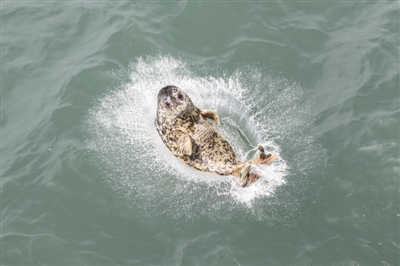 5月10日,一头被放归的斑海豹跃入海中。