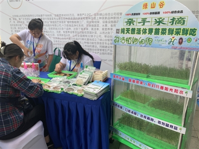 进入主会场,民生科普区是人头攒动,而北京绿山谷芽菜有限公司展台前用各种蔬菜种子摆出的“科技强国 科普惠民”的牌匾更是夺人眼球。据展台工作人员介绍,这些芽菜类的种子是经过专门培育的,特别适用在家庭的阳台上种植,既能当盆景摆设也能采摘食用。