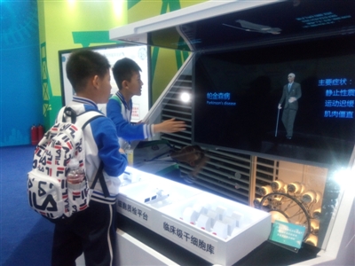 “2019年全国科技活动周暨北京科技周”上,小朋友们对帕金森病演示图像很有兴趣。科普时报记者 张爱华 摄