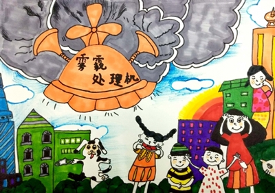 | 雾霾处理机 杜妍潼(11岁)绘 |