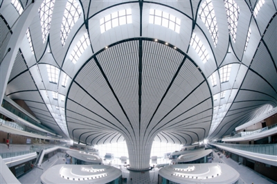 图为6月18日拍摄的北京大兴国际机场航站楼内景。北京大兴国际机场航站楼工程目前已经进入系统调试、分项分部工程检测验收工作阶段。按计划,北京大兴国际机场将于6月30日竣工、9月30日前通航。新华社记者 张誉东 摄