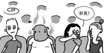 常吃大蒜和洋葱会诱发体臭,菜花(花椰菜)、抱子甘蓝和其他十字花科蔬菜同样含有臭味的化合物硫,它可能导致食用者全身散发出恶臭。