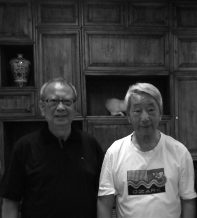 | 37年后,本文作者与北戴河会议期间的室友、著名气象科普作家林之光先生(右,现年83岁)在国家图书馆忆往留影。 |
