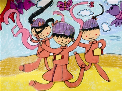 | 图1:作品名称:《黄河母亲》 作者:贾雨欣 北京市第二十中学初二年级 指导老师:李惠燕 图2:作品名称:《打腰鼓》 作者:李佳欣 北京市东四十四条小学三年级 指导老师:张彦君 图3:作品名称:《踩高跷》 作者:戴雅馨 北京市东四十条小学三年级 指导老师:张彦君 图4:作品名称:《日出黄河》 作者:沈勃凯 北京小学翡翠城分校五年级 指导老师:黄远 |