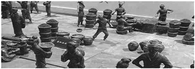 | 洪雅藤椒文化博物馆里的一景:古时采用閟制技法生产藤椒油的微型雕塑。 |