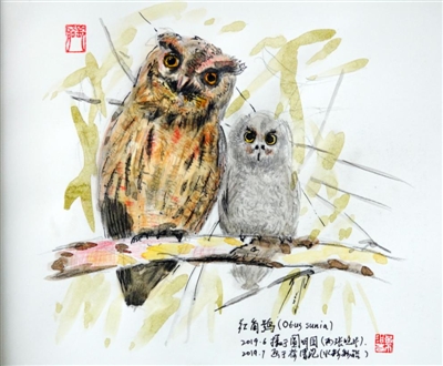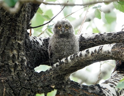 | 图3:三只红角鸮(两大,一小3号)。 |