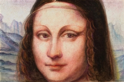 人们在欣赏丽莎迷人的微笑时,会感到她的周身散发着柔和、朦胧的光线,这是因为达·芬奇采用了“薄釉层叠法”。如你还感到丽萨的眼睛随你而动,那是因为达·芬奇是个视觉大师,他巧妙地把丽莎的瞳仁放到了能获得最大视角的平视位置上,是你自己产生了错觉。