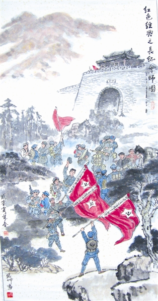近二十年来,他在长征路上艰难跋涉,将《红色经典》系列作品充实到16幅,从建党建军开始的各个历史阶段的重要关口和节点,选用人们耳熟能详的故事和场景,从南湖风云到开国大典,涵盖了中国人民波澜壮阔,前赴后继的奋斗史。作品先后在北京、上海、河北、福建、江西、江苏等省市巡展十余次,产生强烈反响,一些地方和单位把画展作为党课教育的活教材集中组织参观。