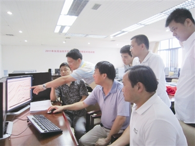 | 图为研究院科技人员对采油厂人员进行技术培训、指导 |
