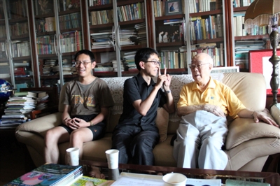 | 王绶琯院士(右一)和北京青少年科技俱乐部的学生会员在一起。 |