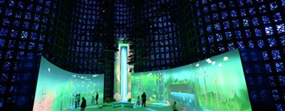 纽约科学馆“互联世界”展位于科学馆大厅最醒目的位置,它是纽约科学馆与Design I/O工作室合作开发的大型沉浸式展览,观众在参观过程中会被带入一个充满幻想奇妙世界之中。
