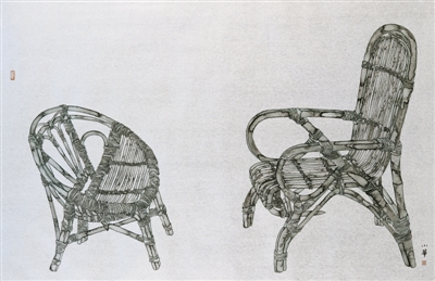 苏小华:整幅画使用的都是“撞水撞粉”法,这是岭南画派比较常用和典型的技法,从清末的居巢居廉一直到现在,在岭南这块土地上,不断的有画家去运用和丰富这种技术。这种技法的特点之一,就是画面的色墨就算干了,还有湿湿的感觉,很能还原南方四季如春的风物和景色。“撞水撞粉”法细分还可以分为两种技法,这幅画我只选用了“撞水”,而且也只选用了墨色,我追求的是单纯和简洁。画面的藤椅通过“撞水”的技法,较好地表现了藤椅的质感和那种斑斑驳驳的感觉。