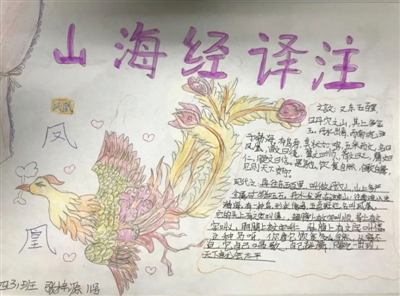 在分享了《山海经》的阅读感受,介绍书中奇人异兽的故事,了解了与《山海经》相关的动漫、电影,以及华为公司几乎将《山海经》中所有神人异兽的名字都注册下来做商标的真实案例后,孩子们对这部中国古典神话更加着迷了。